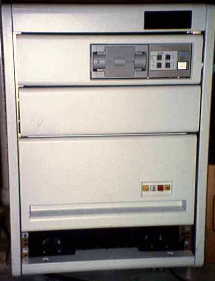 After a few years, microprocessor technology was brought to bear on the PDP-11 architecture. Although there are older microprocessor based PDP-11's, the first machine on our tour is the PDP-11/23. Like most of the microprocessor based machines (except for the PDP-11/24, below), this PDP-11/23 uses a descendent/"knock off" of the UNIBUS called the LSI bus. The disk drive in the PDP-11/23 full picture is an RL01.